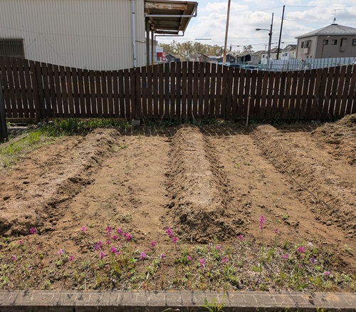 肥料を混ぜて畝を作って、